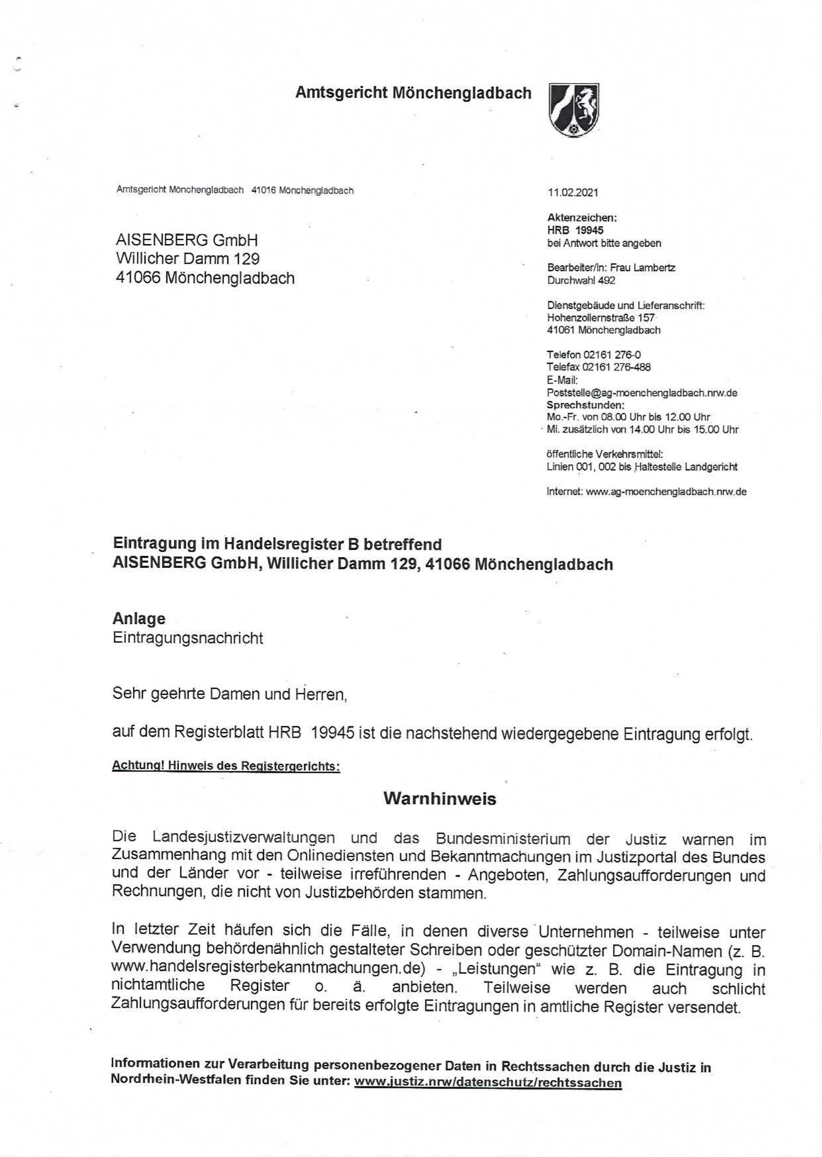 AISENBERG GmbH занимается международной торговлей и производством механических и электрических изделий для управления технологическими процессами. Компания базируется в городе Мёнхенгладбах, Германия. Создание конкурентных преимуществ для клиентов за счет оптимизации их бизнес-процессов с помощью самых надежных технологий и максимально удобных условий сотрудничества — вот миссия AISENBERG, которая всегда лежала в основе ее лидерства в отрасли.
